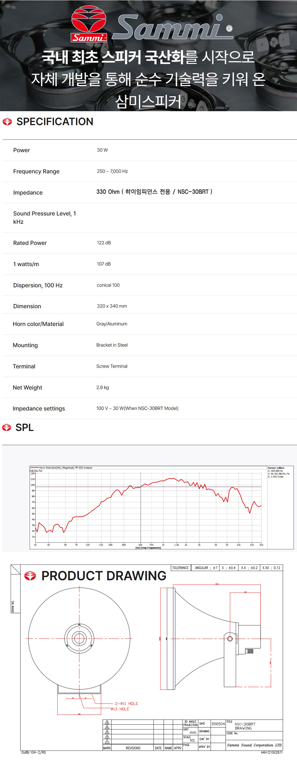 * 제품의 특징 및 사양 ( 삼미스피커 NSC30BRT )