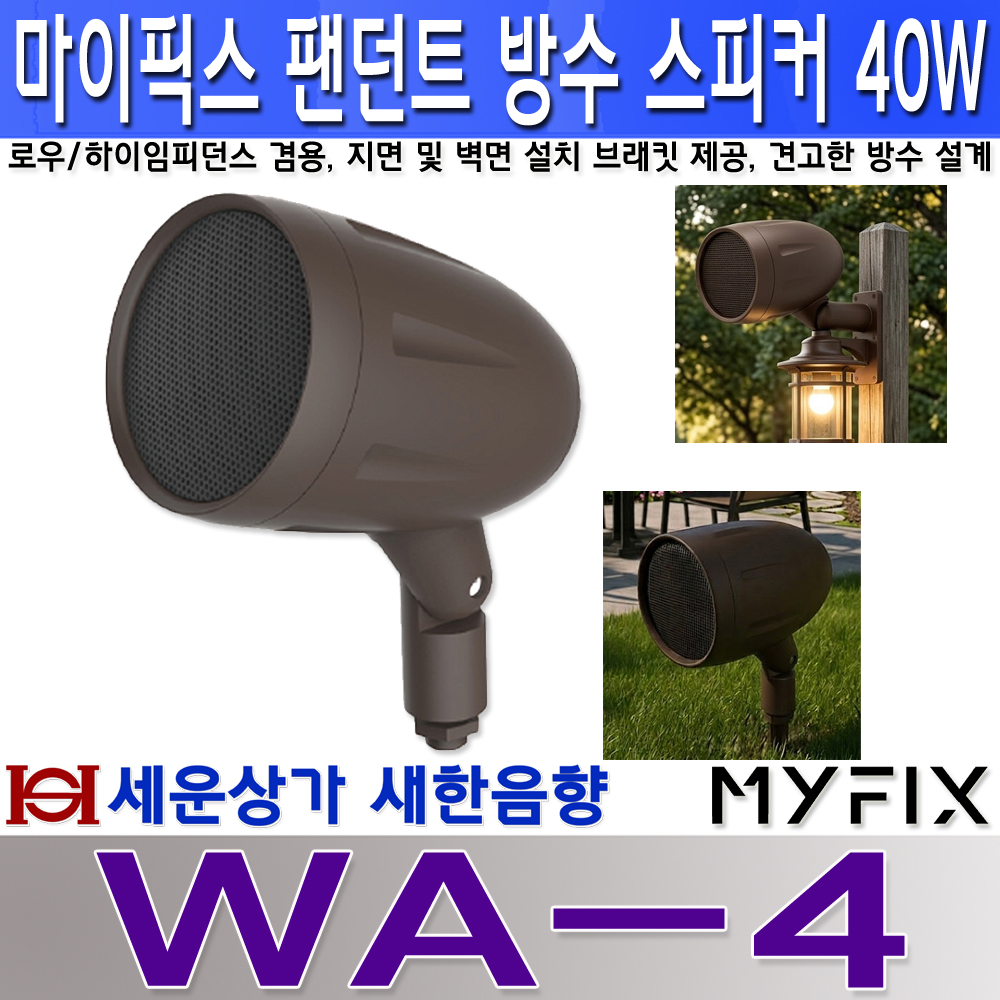 WA-4 마이픽스 야외 방수 스피커 40W, 로우/하이임피던스 겸용, 지면 및 벽면 설치 브래킷 제공, WA4 본문