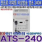 ATS-240 젠프로(GENPRO) ATS240 벽부형 아파트 화재 비상방송 앰프 240W 스피커 출력단 단락시에도 다른층 화재통보 가능 ( 화재안전기준 NFSC 202 제5조 의거 ) P형,R형 화재수신반 연동, 충전 배터리 내장 화재 방송 단락 회선 감지 단락 회서 방송 자동 차단 * 제품의 특징 및 사양 / 젠프로(GENPRO) ATS..