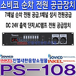PS-108 SOVICO SEQUENCEDPOWER DISTRIBUTOR소비코 순차 전원 공급 장치 PS1087채널 순차전원, 1채널 상시전원원격 조정 파워 리모트 단자,1~7초 TIME 셋팅보조전원 DC 24V1.5A 출력 " MADE IN KOREA " * 제품의 특징 및 사양 ( PS108 ) 특 징 ( PS108 ) - 7채널 AC 순차 전원 공급 장치 각 채널당 2500W (AC 220V 10A)의 출력 공급..