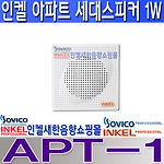 APT-1 인켈 아파트 세대 스피커(매립형) 천정,벽면 매립형, 1W,APT1 APT-1 APT SPEAKER 제조사 : (주)인켈피에이제조국 : 대한민국 상세설명(APT1) 주요 특징 - 실내장식과 어울리는 미려한 디자인 - 천정및 벽면에 부착하기 쉬운 구조로 시공이 간편함 규격 및 성능 특성 APT-1 정격 입력 1 W 임피던스 10..