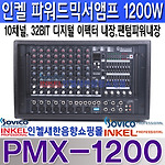 PMX-1200 인켈 10채널 파워드 믹서앰프 1200W32 BIT STEREO DIGITAL EFFECT 채용 * SR SYSTEM PMX1200 1200W POWERED MIXER *상세설명 특 징 ( PMX1200 ) - 1200W 출력의 파워 믹서 - 8개의 모노 입력, 2개의 스테레오 입력 - 3밴드 음색 조절기 내장. 마이크,스피커,실내구조 또는 취향에 따라 자유로운 음색 조절 가능 - 카..
