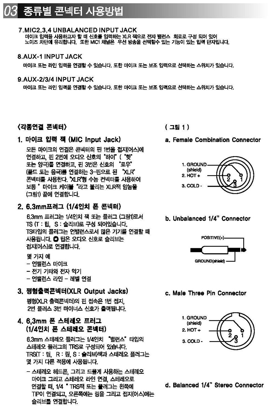 마이크입력 5개,외부입력 4개, 라인 입출력 단자
