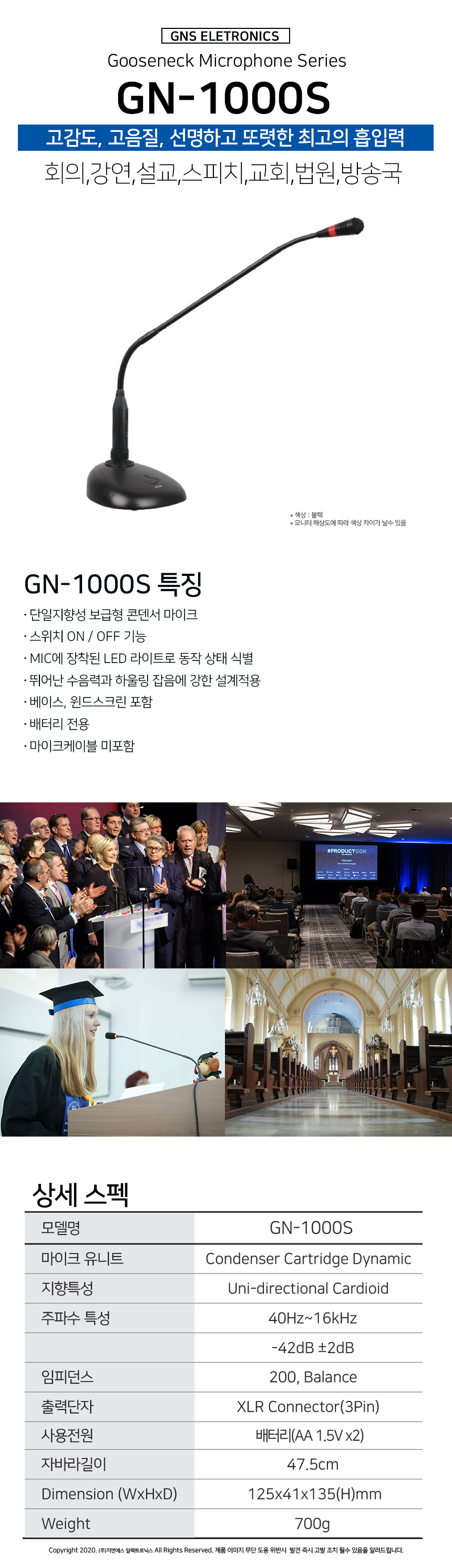 GN-1000S, 지앤에스(GNS) 구즈넥 마이크,건전지 팬텀 겸용,뛰어난 수음력,하울링 강한 설계.GN1000S