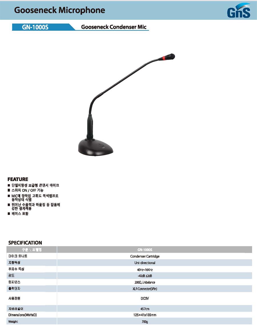 고감도 콘덴서형 구즈넥마이크 GN1000S