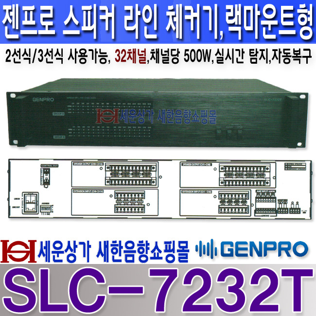SLC-7232T, 젠프로(GENPRO) 랙마운트형 스피커 라인체커기,채널당 500W 32회로, 2선식 3선식 연결, 실시간 탐지,자동복구,부저기능.SLC7232T