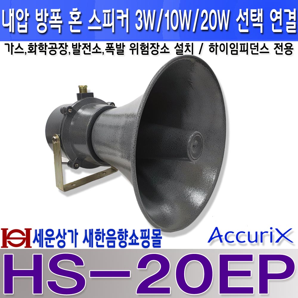 HS-20EP방폭스피커 / 내압 방폭형 혼스피커 3W, 10W, 20W 선택 연결폭발성가스가 존재하는 장소에서 사용되는 방폭스피커 HS20EP가스공장,발전소,화학공장등에서 주로 사용되는 방폭 혼스피커앰프 연결시 3W, 10W, 20W 출력 선택하여 연결 사용됨하이임피던스, 앰프 저항값 70V 100V 스피커 단자에 연결 사용" 발주 생산 제품입니다. 발주후 7일 이상 소요 될 수 있습니다. "