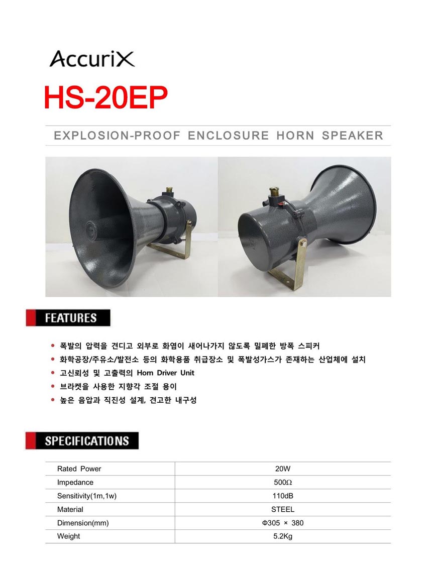 * 제품의 특징 및 사양 ( 방폭스피커 HS-20EP )