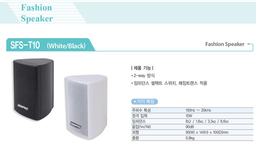SFS-T10 젠프로 미니 패션 스피커 10W, 하이 로우임피던스 겸용,SFST10