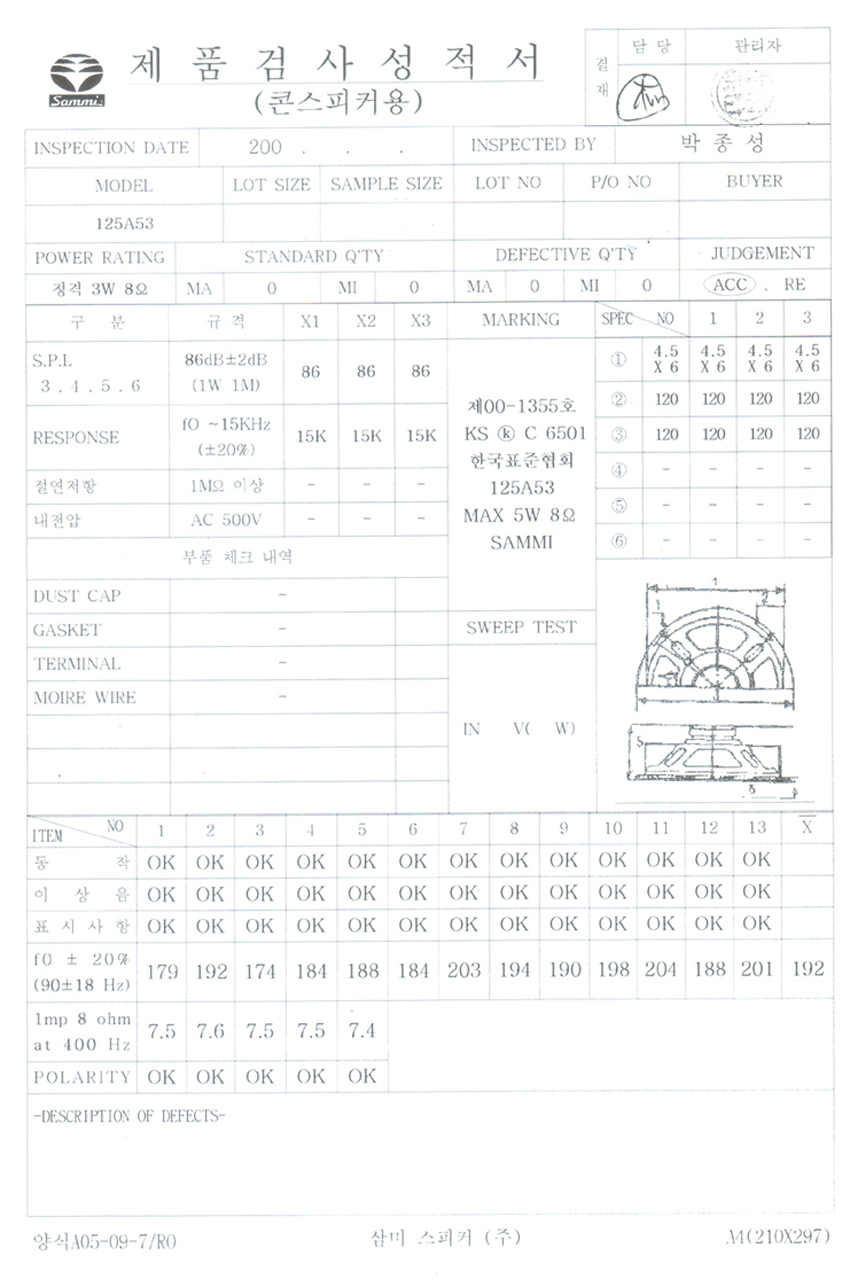 - 제조사 : (주)삼미스피커 (충북 음성)