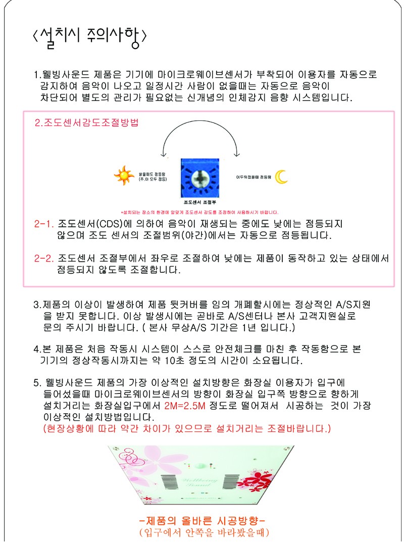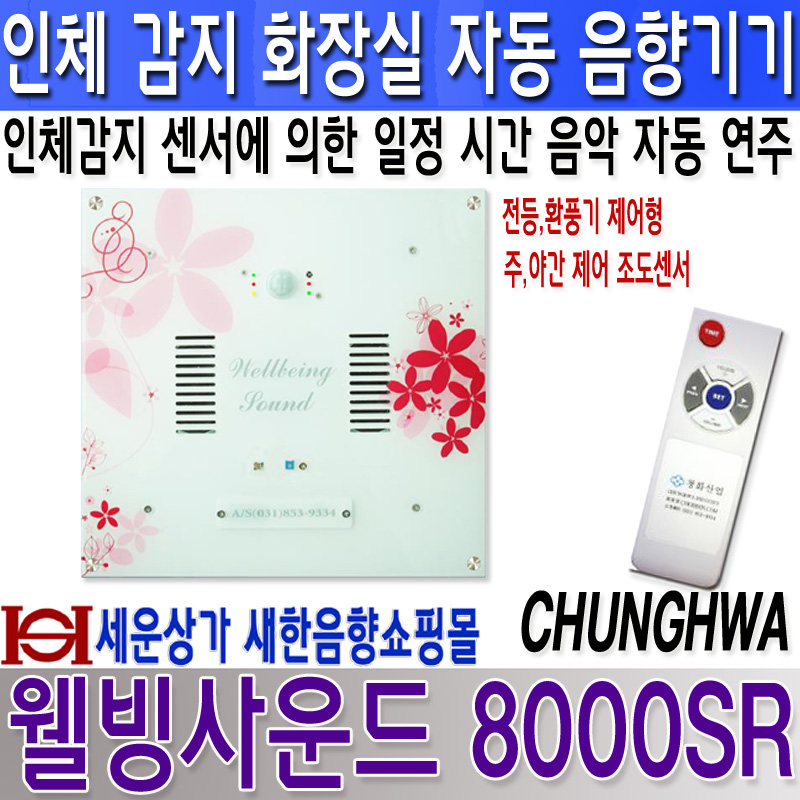 웰빙사운드8000SR, 인체감지 화장실음향기기,전등제어,리모콘기능,조도센서 주야간 탐지 작동,웰빙사운드8000SR