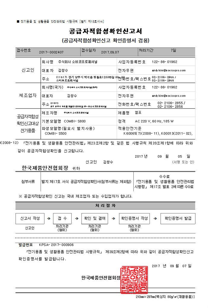 * 제품의 특징 및 사양 ( 소비코프로페셔널 Combi-S500 )