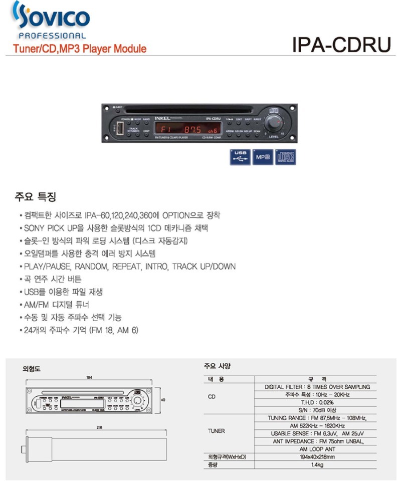 • OPTION :당사 모델 IPA-CDRU (CD & MP3 & TUNER MODULE) 장착