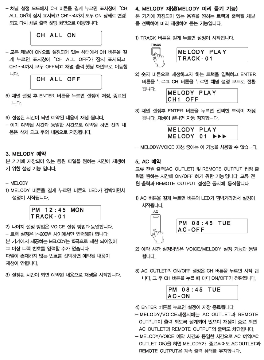 - 4채널의 입/출력 채널 중 멜로디나 녹음 내용이 출력될 때 채널을 지정, 불필요한 채널로의 출력 방지