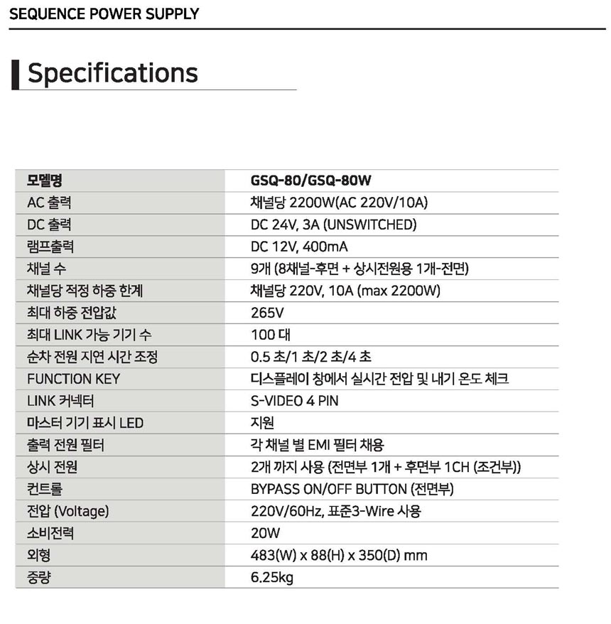 * 제품의 특징 및 사양 ( GSQ-80W 순차 전원 공급기 )