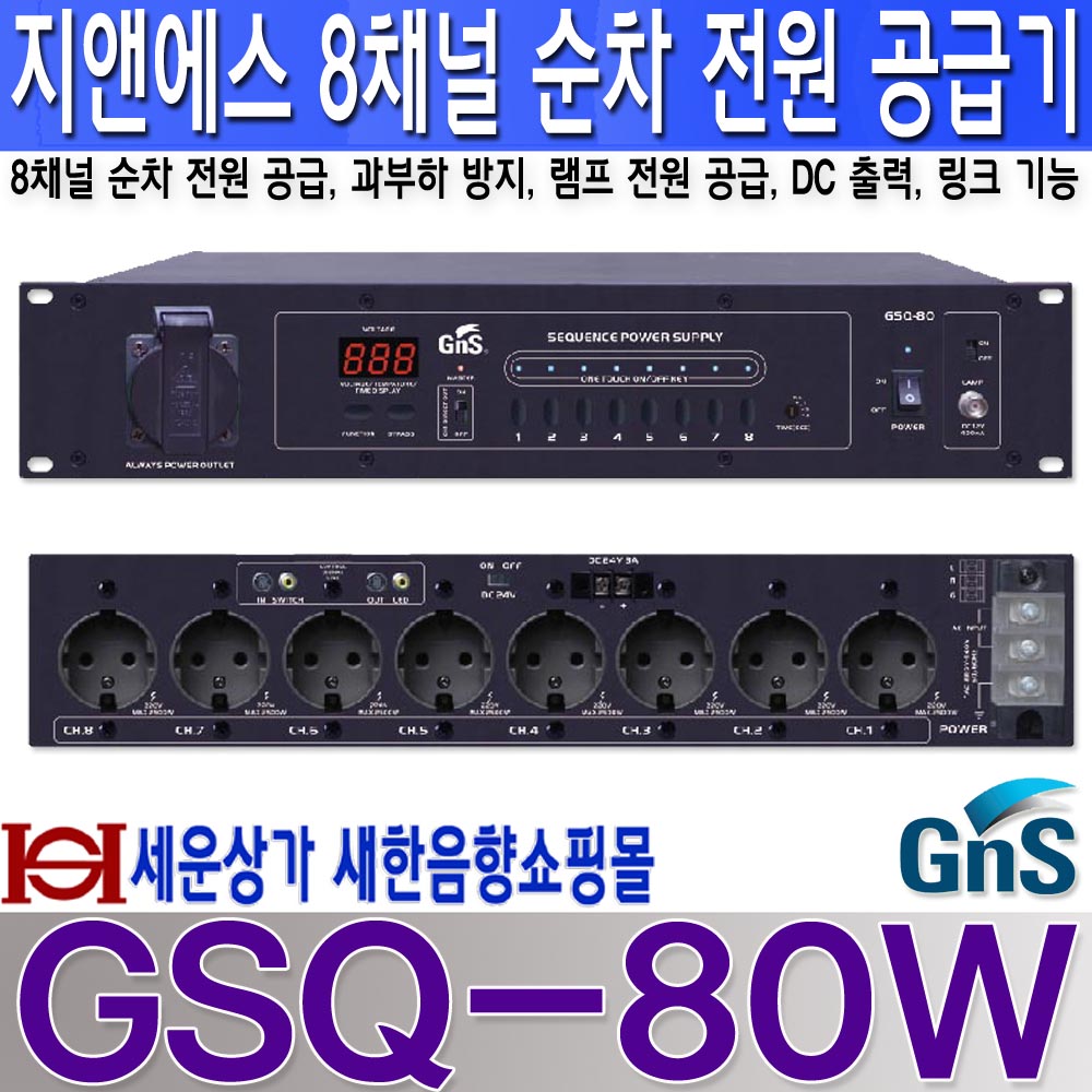 GSQ-80W 지앤에스(GNS) 8채널 순차전원공급기, 과부하 방지, DC 출력, 여러대 링크 기능, 원격 ON/OFF 제어, 1번 채널 상시 출력 기능, GSQ80W