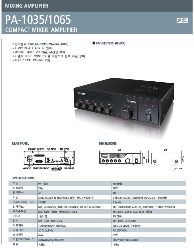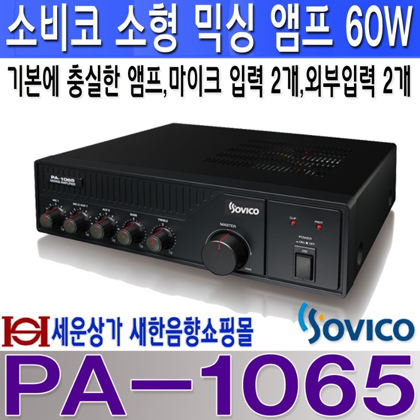 PA-1065, 소비코(SOVICO) 소형 앰프 60W,마이크입력 2개,외부입력 2개, PA1065 소형 방송 앰프