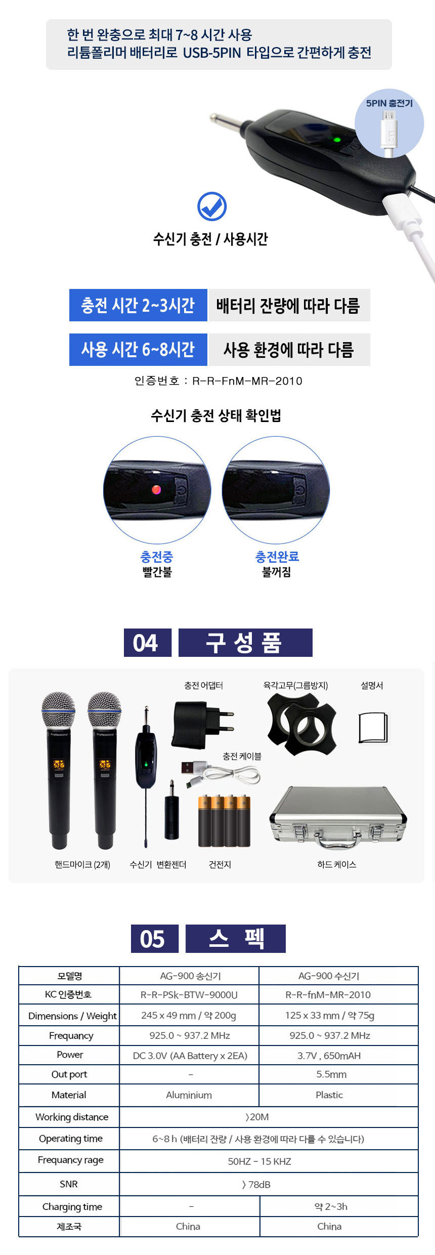 * 제품의 특징 및 사양 ( AG-900 2채널 900MHz 무선마이크 )