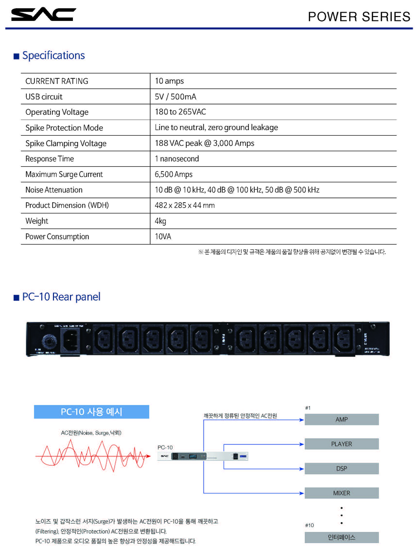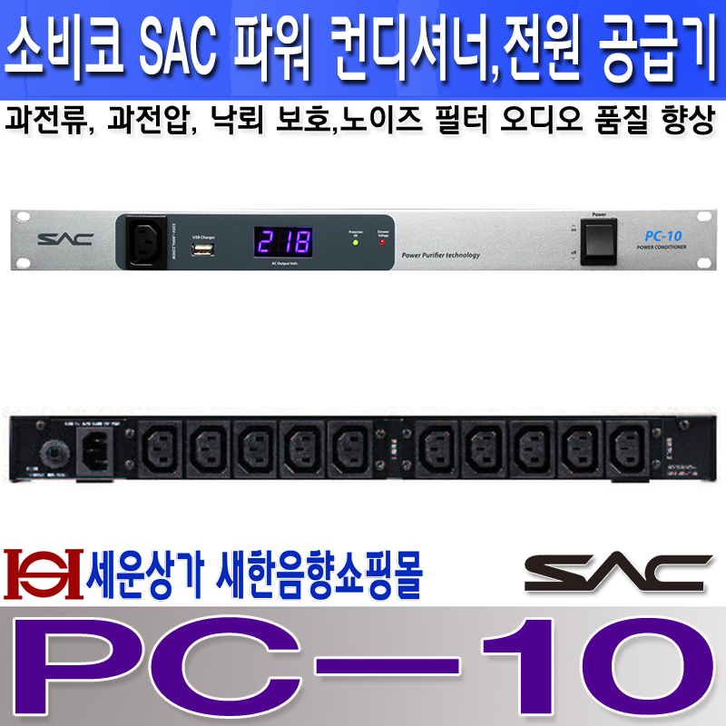 PC-10 SAC 소비코 파워 컨디셔너,과전류 과전압 낙뢰 보호,노이즈 필터 기능 오디오 품질 향상 PC10