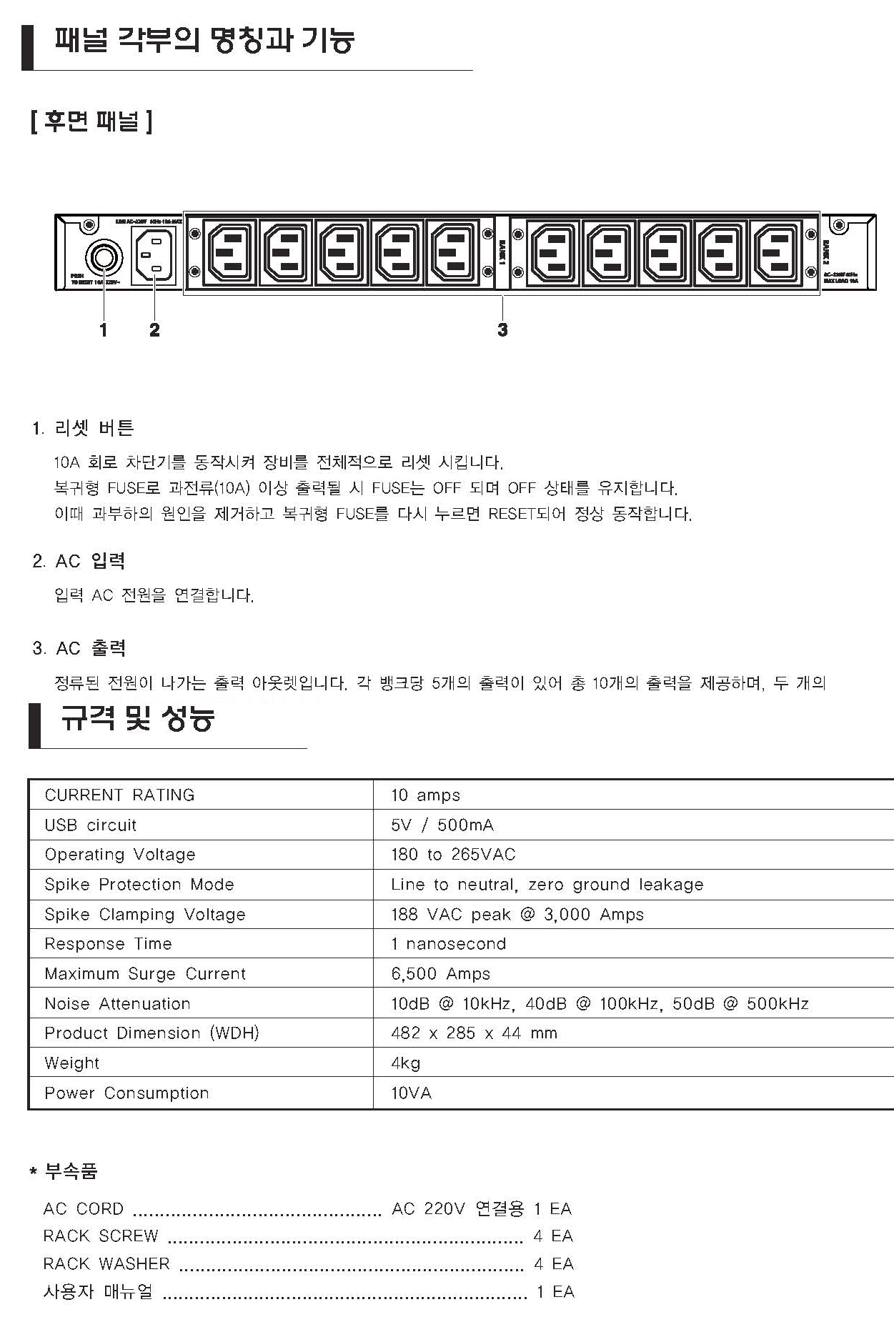 * 제품의 특징 및 사양 ( SURGE PROTECTION PC-10 )