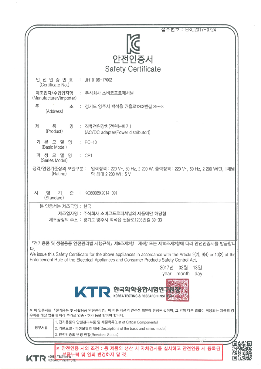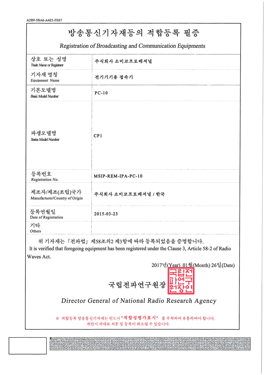 - 방송통신기자재 인증번호 : MSIP-REM-IPA-PC-10