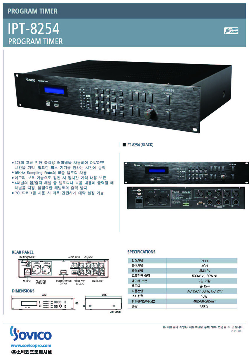 IPT-8254A 소비코 차임벨 타이머,시보기,메모리 내장,음원 추가 변경 가능,PC 제어,요일별 예약 기능, 정전 보상 회로, IPT8254