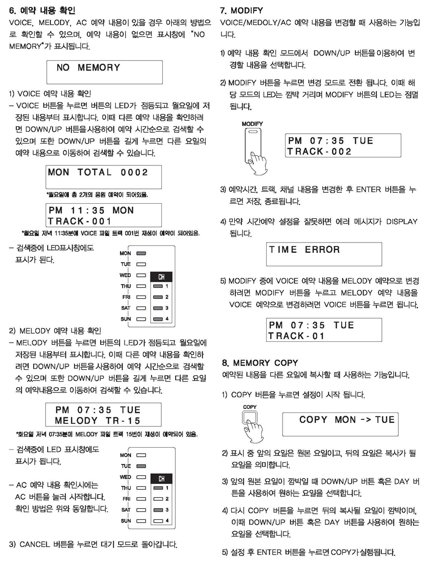 15개 멜로디 내장, 요일별 예약기능, 예약 백업기능