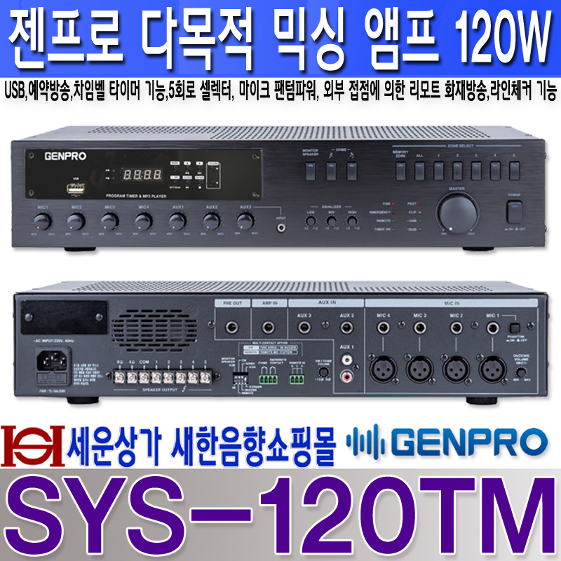 #젠프로 #GENPRO #SYS120 #SYS120TM #학교엠프 #교회엠프 #학원엠프 #병원엠프 #군부대엠프 #백화점엠프 #카페엠프 #매장엠프 #비상방송엠프 #소방엠프 #CD엠프 #BGM엠프 #휘트니스엠프 #체육관엠프 #강당엠프 #다목적엠프 #아파트엠프 #차임벨앰프 #앰프내장시보기 #시보기 #차임벨타이머내장엠프 #학원차임벨 #학교차임벨 #공장차임벨 #작업장차임벨 #예약방송엠프 #MP3파일예약방송 #BGM예약방송 #소방용엠프 #매장엠프 #카페엠프 #BGM엠프 #USB엠프 #방송용엠프