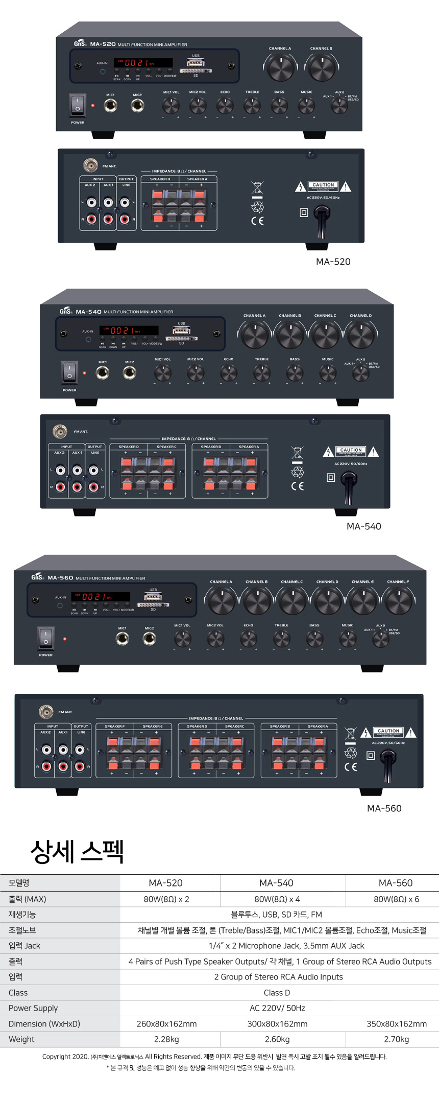* 구성 제품별 특징 및 사양 ( 앰프 : MA-540 / 스피커 : GLS-20 )