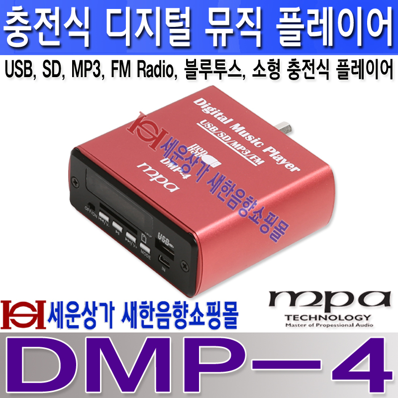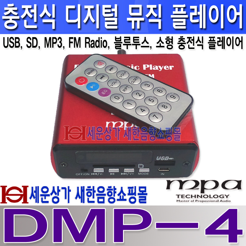 DMP-4, 충전식 디지털 뮤직 플레이어, USB,SD,FM 라디오 플레이어,제품구성품:리모콘,충전기,USB충전케이블. DMP4