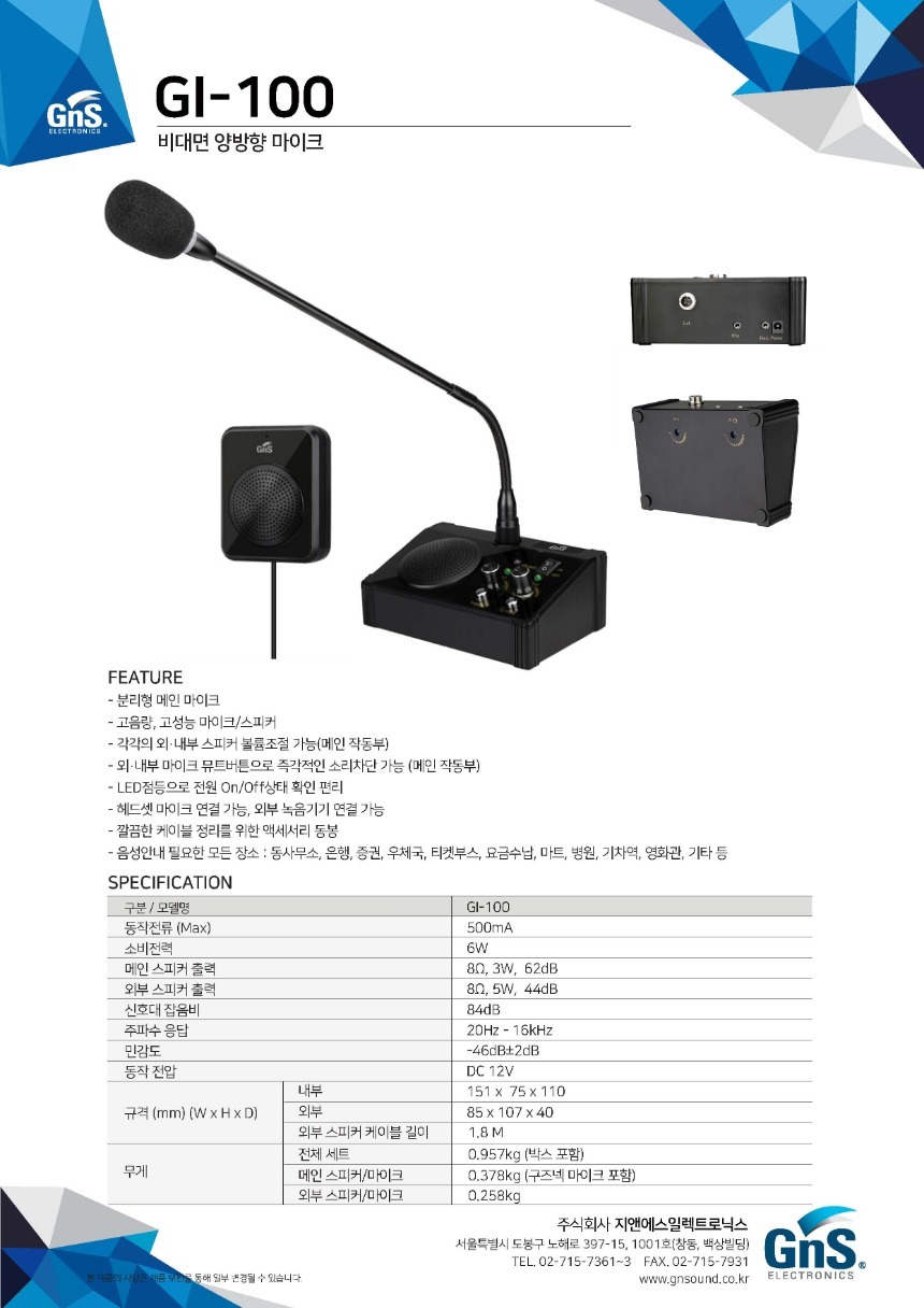 - 모델명 : 비대면마이크 GI-100 (GI100)