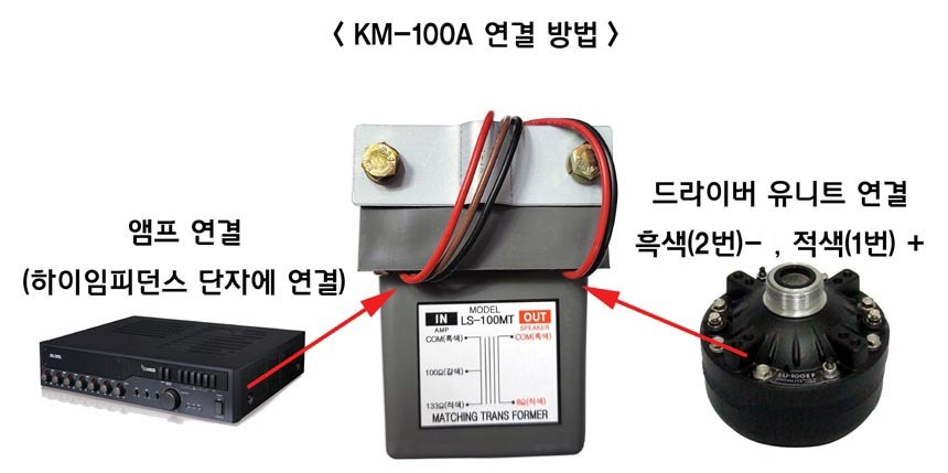 - KM-100A 혼 드라이버 유니트 결합용 모델로 방수 처리되어 실내 및 옥외 사용이 가능합니다.