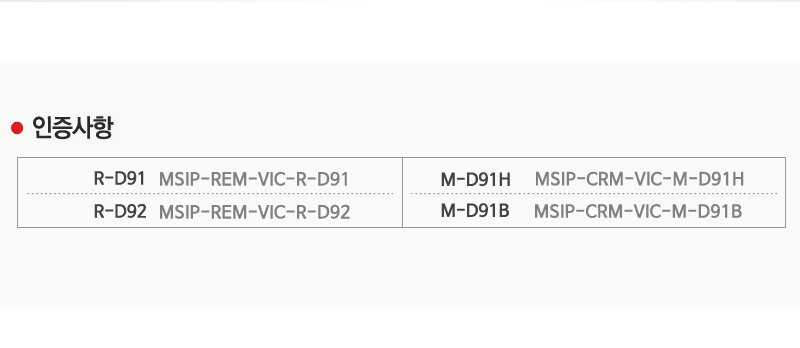 - 인증번호 : MISP-REM-VIC-R-D92 / MISP-CRM-VIC-M-D91H / MISP-CRM-VIC-M-D91B