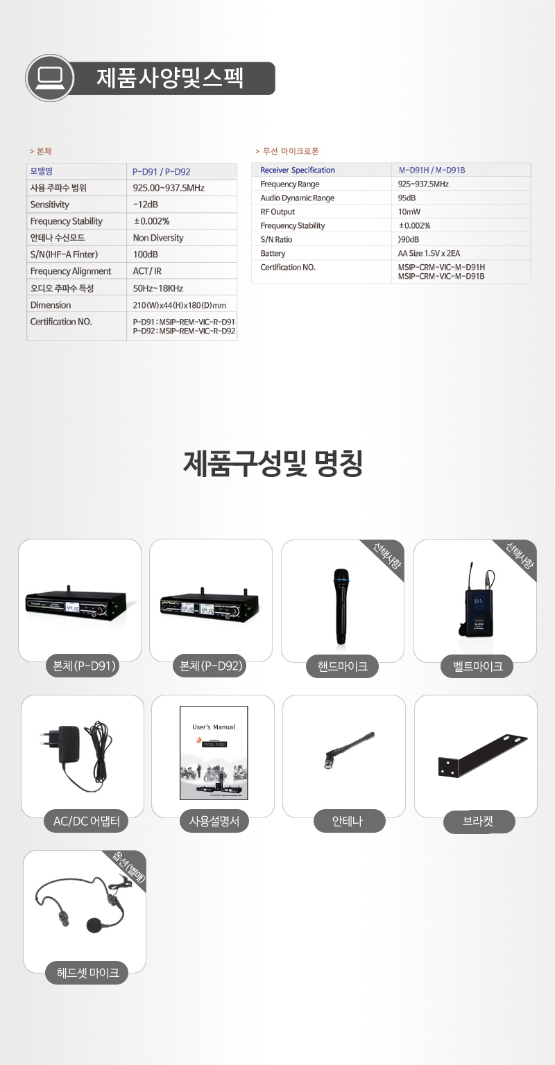 P-D92 빅보스 무선마이크, 충전식 무선마이크, 학교 무선마이크, 교회 무선마이크, 행사 무선마이크, 법당 무선마이크, 휘트니스 무선마이크