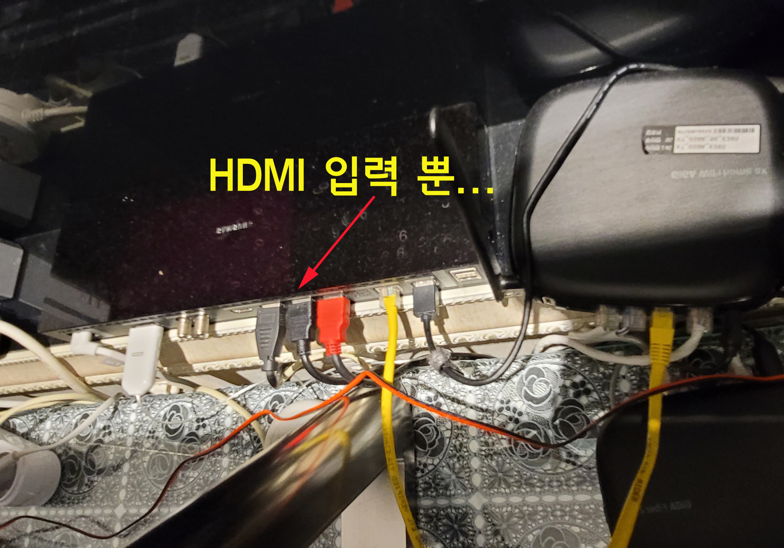 TV에 별도 아날로그 외부 입력 단자가 있으면 음성만 입력하면되는데...
