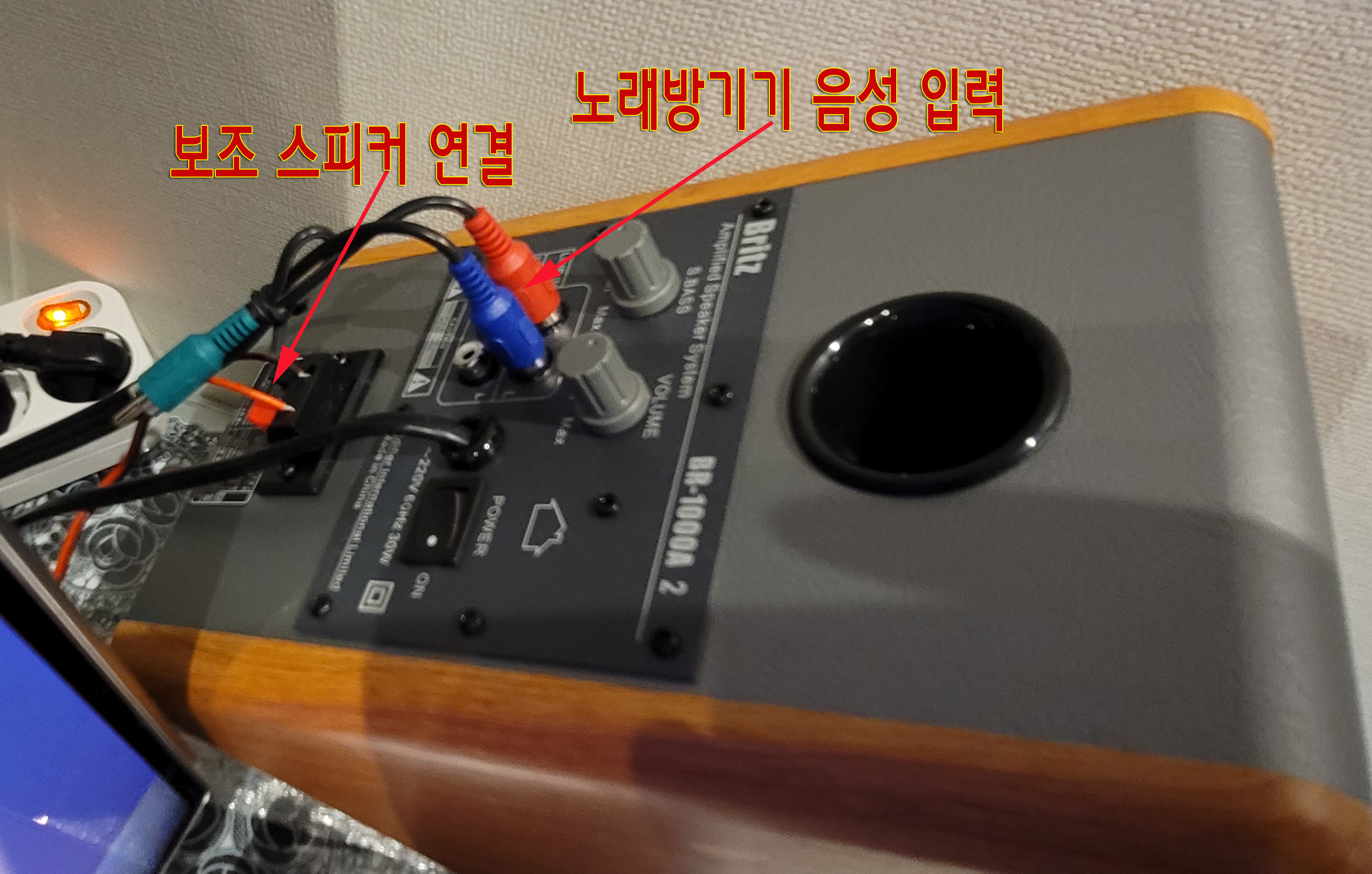이렇게 구성하여 설치하니 별도의 앰프가 필요 없고, 커다란 노래방 전용 스피커도 필요없고....