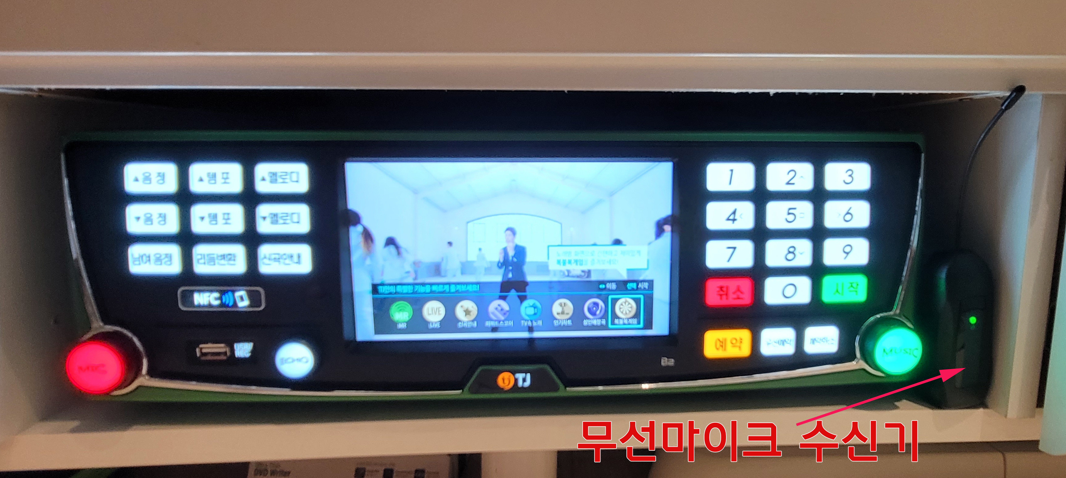 수신기 크기가 작아 노래방기기 옆 빈 공간에 배치...