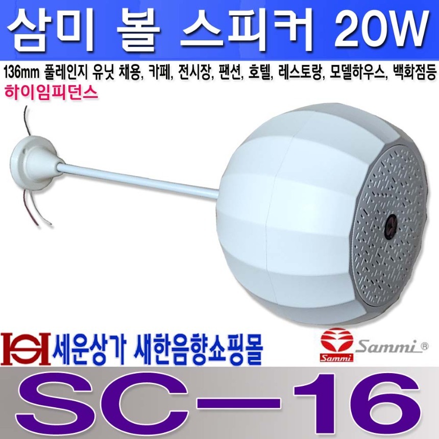SC-16 삼미스피커 볼 스피커 20W, 하이임피던스, 행잉 팬던트 스피커, 136mm 플레인지 스피커 유닛 채용, 카페, 레스토랑, 전시장, 팬션, 매장, 전시장, 모델하우스, 백화점, 예식장, 호텔, 병원, 학..