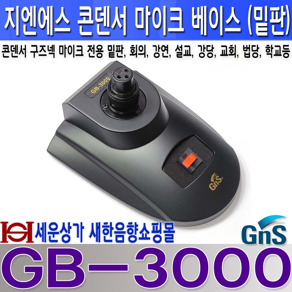 GB-3000 지앤에스 콘덴서 마이크 베이스, 콘덴서 마이크용 구즈넥 밑판, 회의실, 강당, 강연장, 교육장, 행사장, 교회, 법당, 학교, 안전교육장등 사용. GB3000