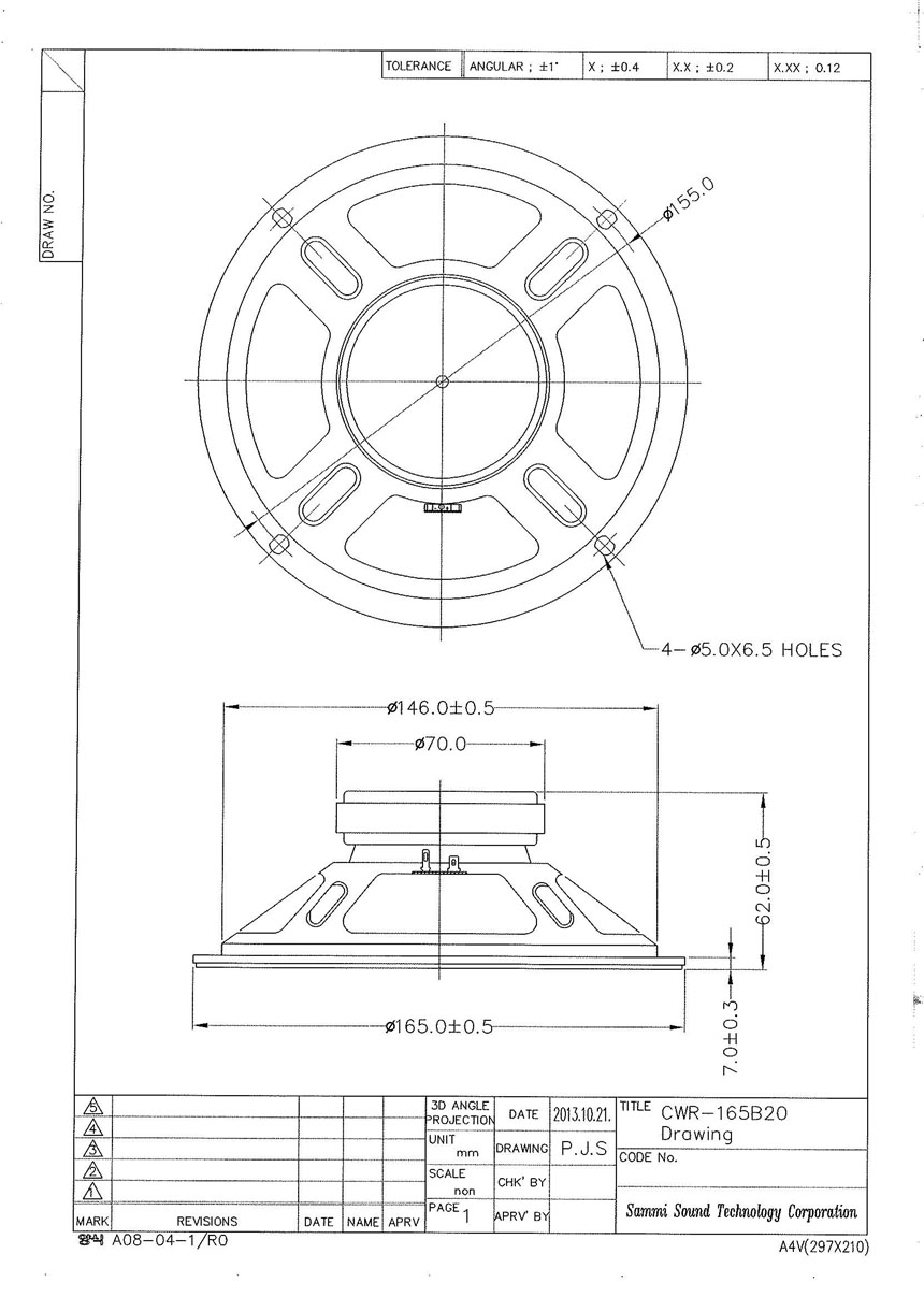 CWR-165B20, 삼미스피커 6.5인치 풀레인지 스피커, 오디오, 게임기, 산업 기자재, 키오스크, 스피커 자작등 사용, CWR165B20
