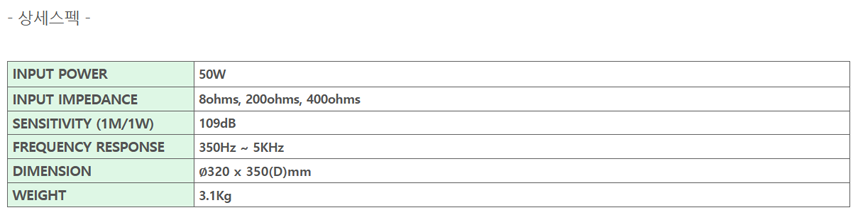 * 제품의 특징 및 사양 ( HS-T50 방수 혼 스피커 )