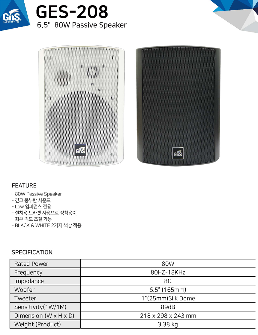 - 모델명 : GEP-208 액티브 스피커 , GES-208 패시브 스피커