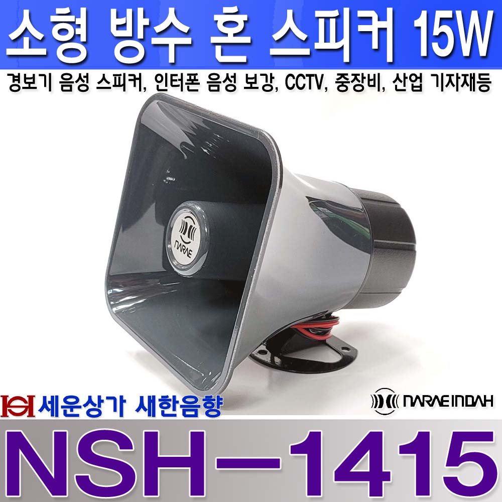 NSH-1415 소방 방수혼 스피커 15W, CCTV,중장비, 바이크, 차량, 인터폰 음성 보강 및 경보기 음성 전달용, 기타 산업 기자재등 다용도 사용