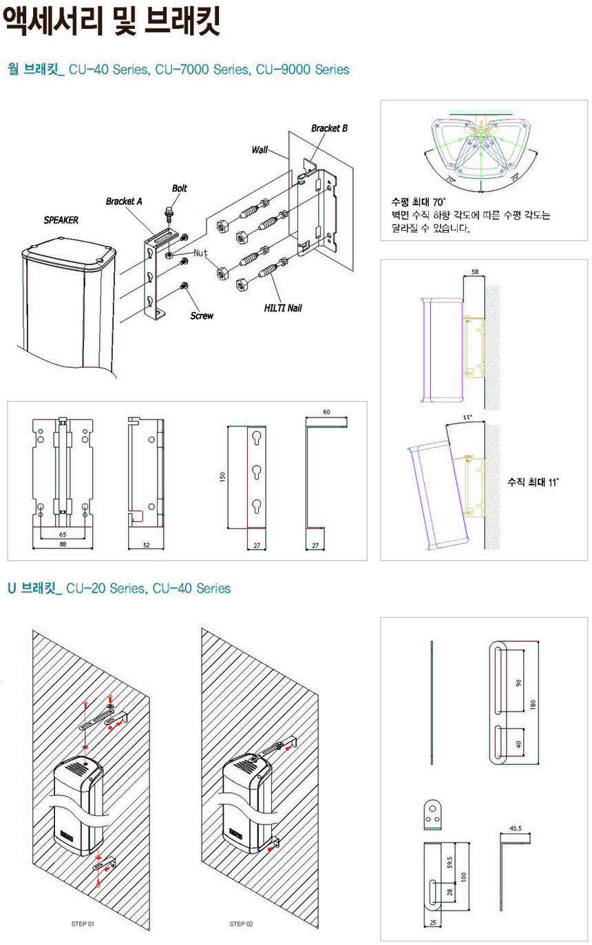 CU-44FO 월 브라켓 포함, CU-44FOU U 브라켓 포함