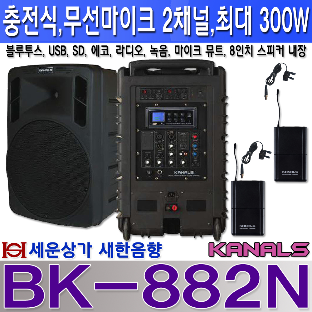 BK-882N카날스 충전식 앰프 300W, 2채널 무선 마이크,블루투스,USB,에코 녹음 : 세운상가 새한음향