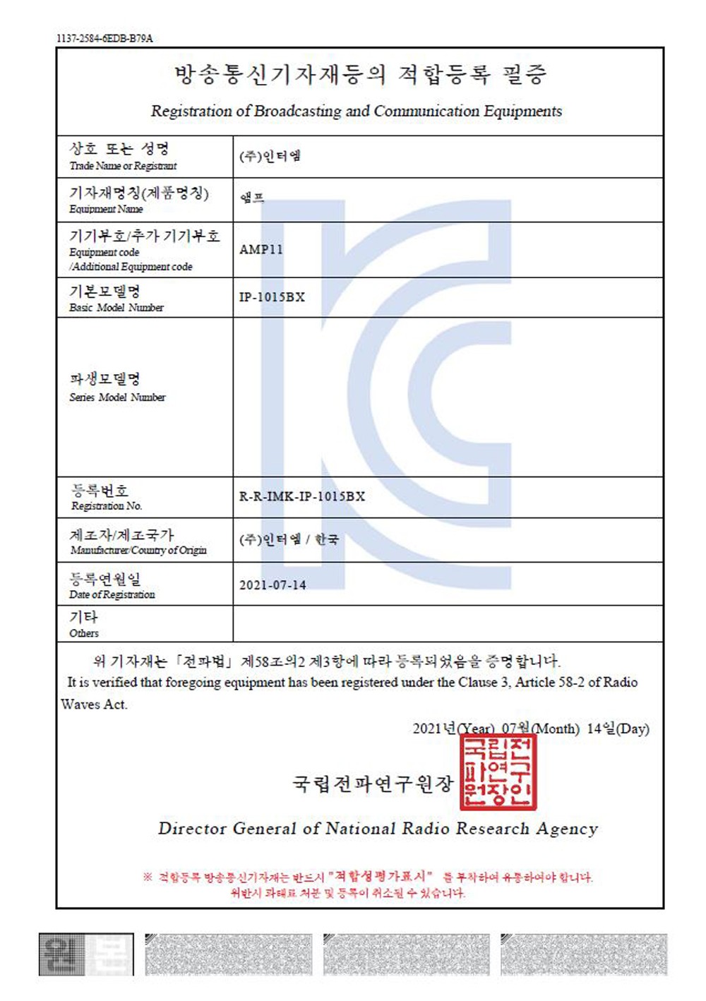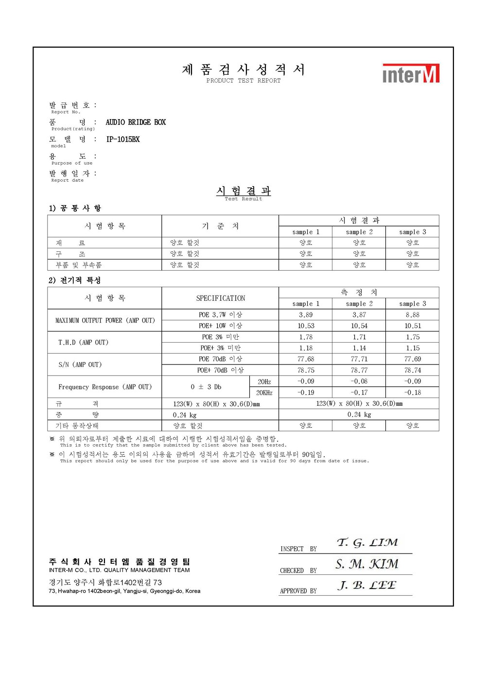 - 품 명 : 네트워크 오디오 브리지 박스 IP1015BX / 앰프 내장 네트워크 오디오 브리지 박스