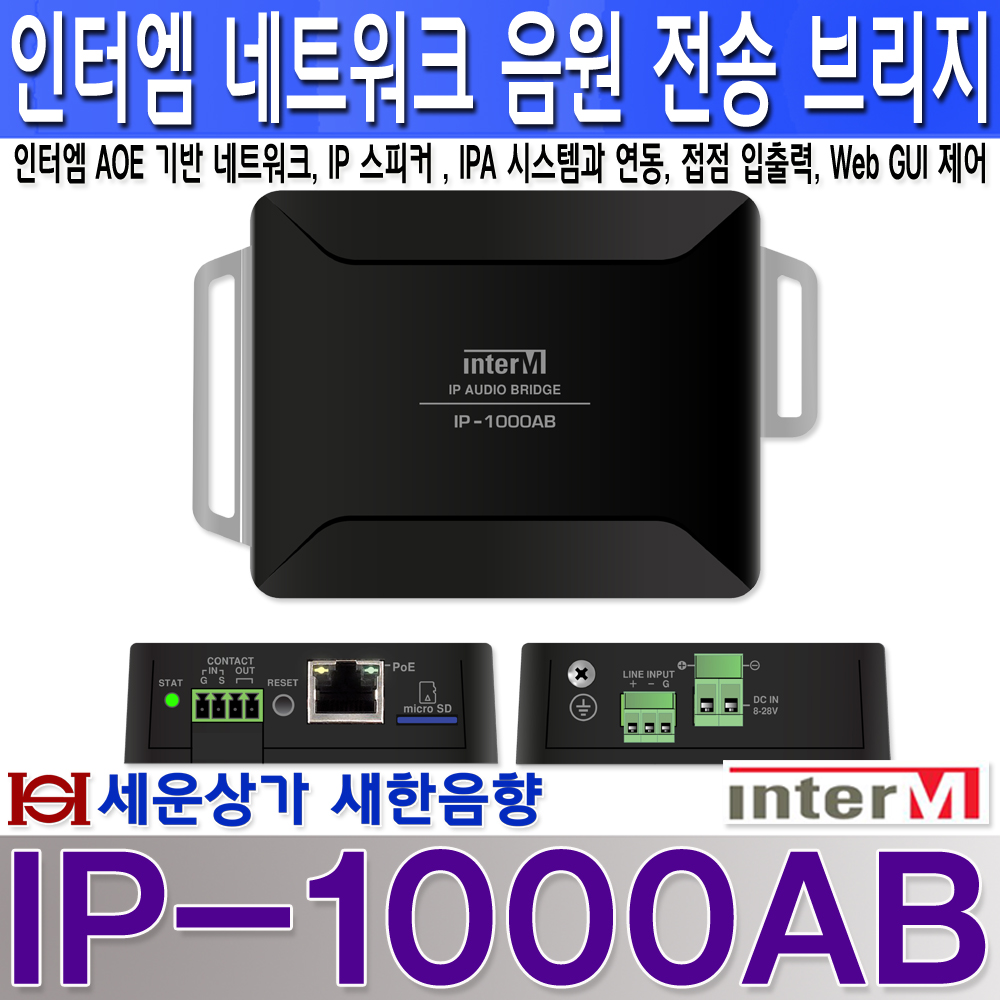 - IP-1000AB는 아날로그 오디오 신호를 입력 받아 디지털 오디오 신호로 송출해주는 장치입니다.