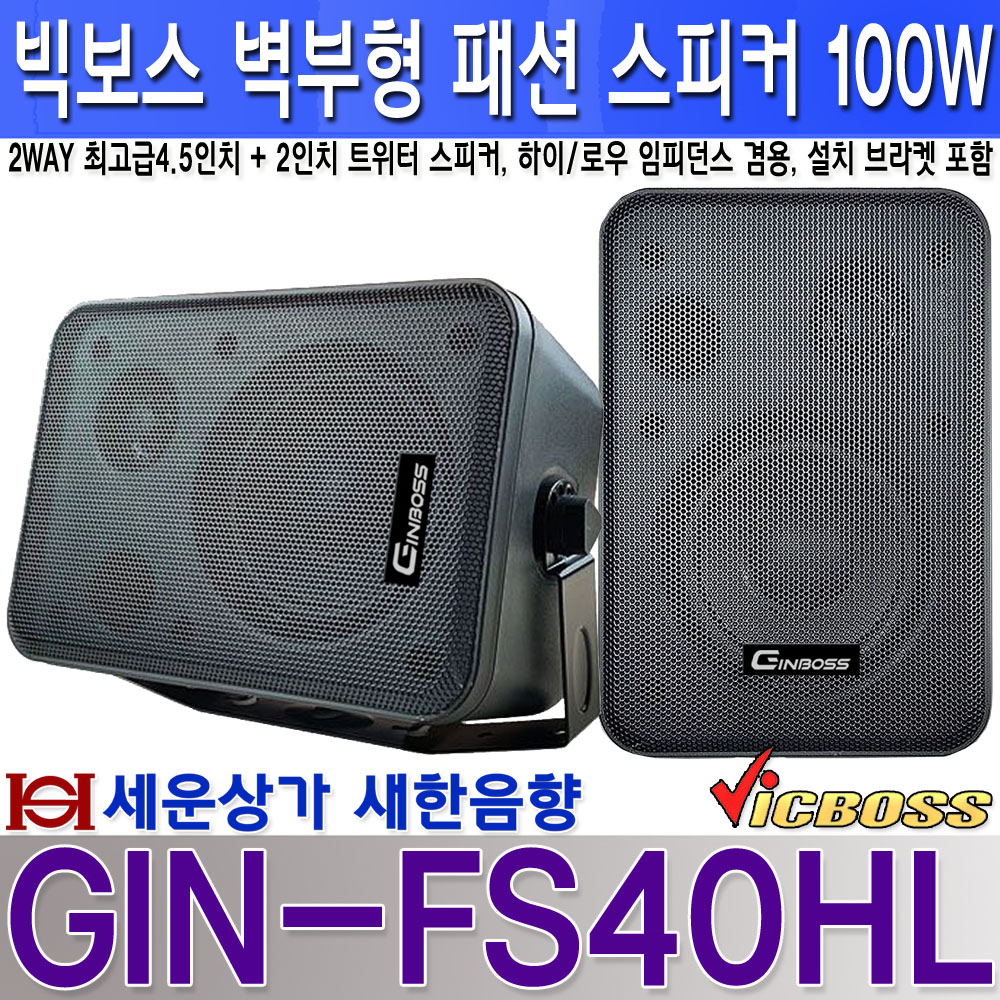 GIN-FS40HL 빅보스 고급 패션 스피커 최대 100W, 하이/로우 임피던스 겸용, 브라켓 포함 / GINFS40HL