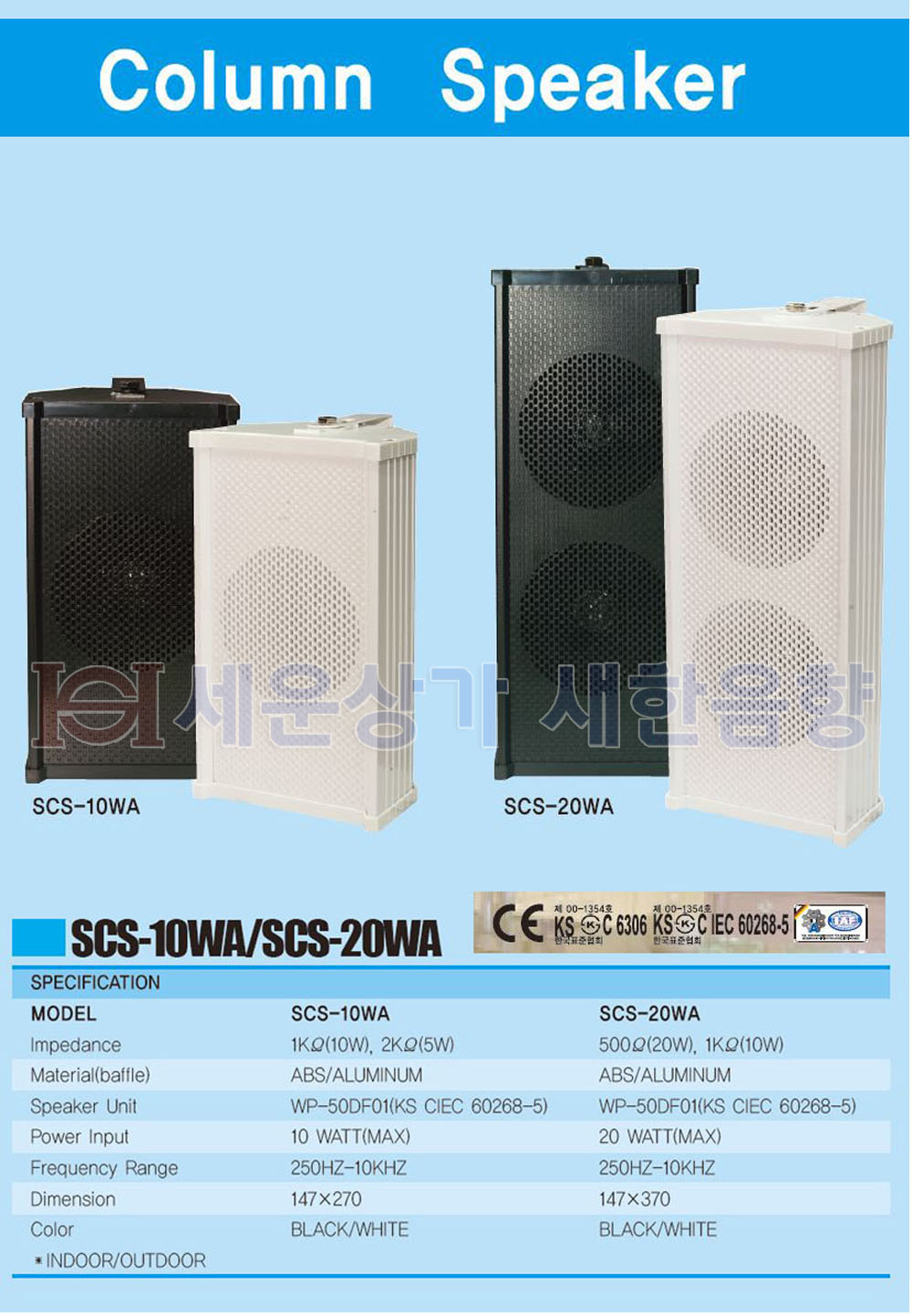 SCS-20WA(WS-20) 삼미 칼럼스피커 20W, 실내 실외 방수 선택 SCS20WA : 세운상가 새한음향