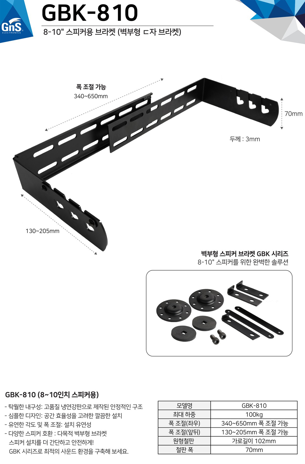 * 제품의 특징 및 사양 ( 지앤에스 벽부형 스피커 브라켓 GBK-810 )
